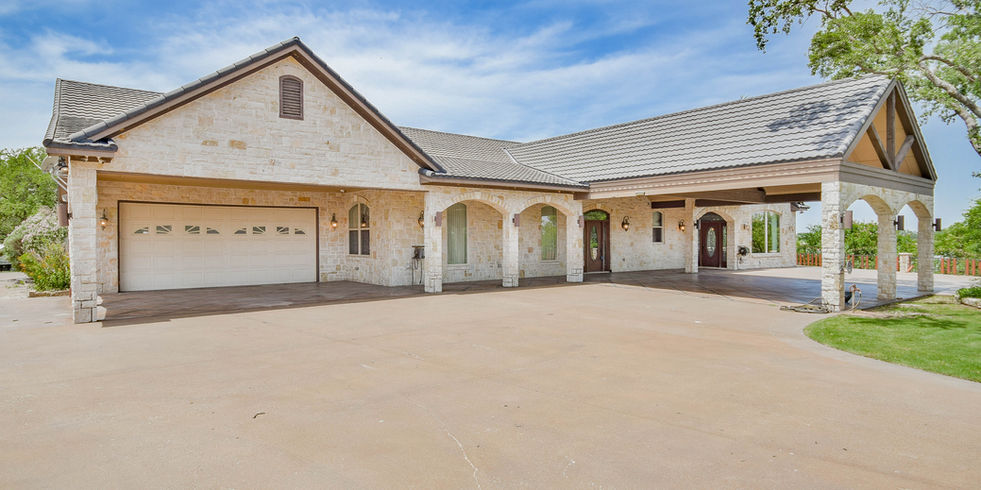 OWN A RARE PIECE OF PARADISE. Sprawling 1 acre Main body Lake Front property, situated behind private gate with guest house, workshop, & abundant storage. Large circle drive welcomes you into this stately stone & tile roof estate featuring, iron fixtures, cathedral ceilings Parque & ceramic tile flooring, with encompassing windows throughout. Prepare meals in Chefs eat-in kitchen w-unending rich wood cabinetry, DBL oven, granite counters, island, pantry & overlooks living with showpiece fireplace & wood beams. 2X Master suites boasting seating area & ensuite bath complemented by dual vanities, jetted tub, separate shower, and oversized walk-in closets. Additional features include sitting room, 2X gun closets, cedar closet, enormous utility w-sink . Sip coffee on multiple stained concrete covered porches or under pergola w- water views. Have fun on water with 2 story Trex boat dock w- lift, slide, private boat launch & beach side gazebo. Large covered parking, 2 car garage & storage area for boats. Just 2 miles from historic square shopping & dining. This exquisite Lakeside hideaway is a must see & wont last long!